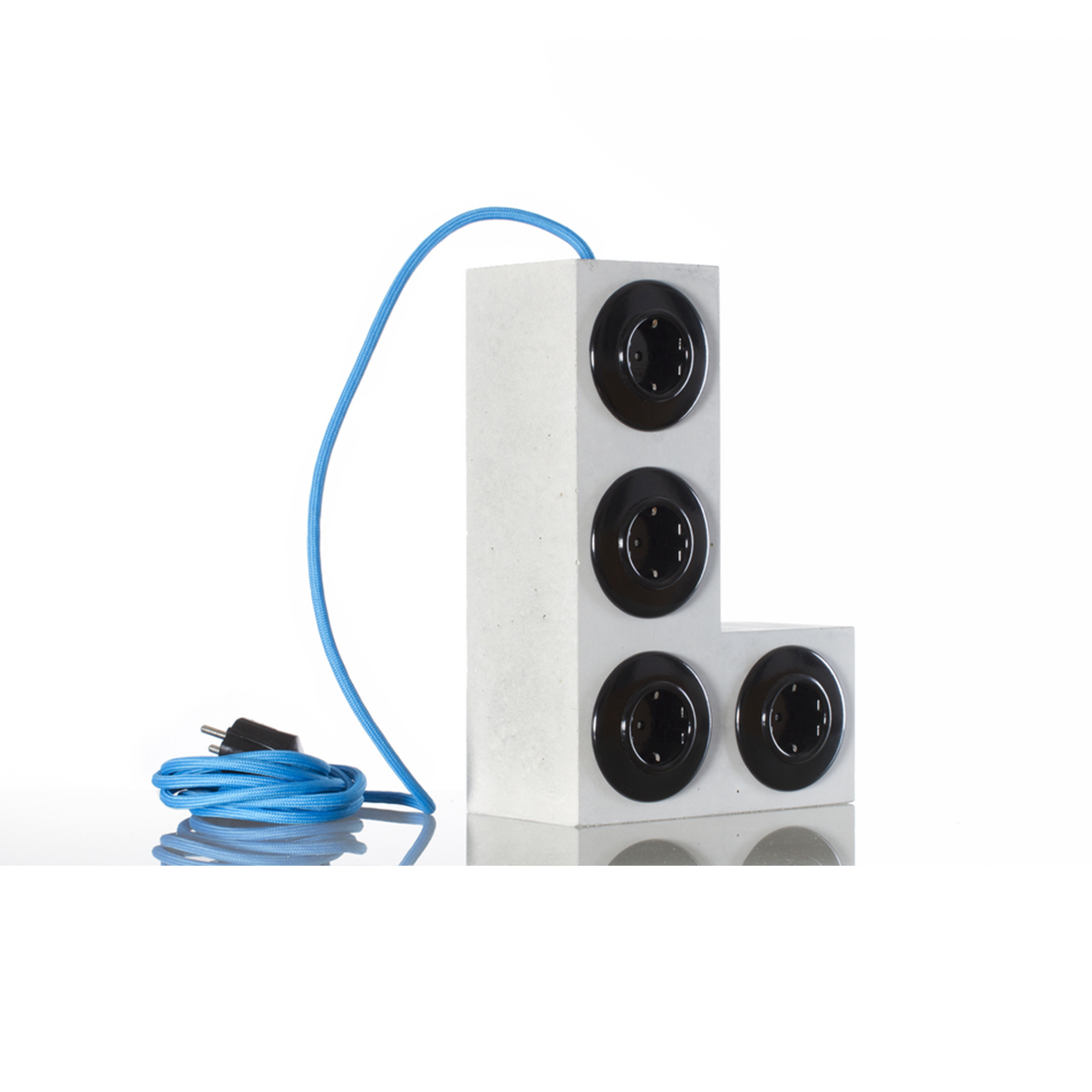 Die 8 Kilo Beton sind nicht nur schwer, sondern massiv und bieten Stabilität, die Steckdosenleisten in ihrer klassischen Form nicht einmal annähernd bieten können. Ob als flexibles Kabelmanagement, stylisches Wohnaccessoire oder schlicht als markantes Designelement: Tetriplugs machen aus der Notwendigkeit eine Kunstform.